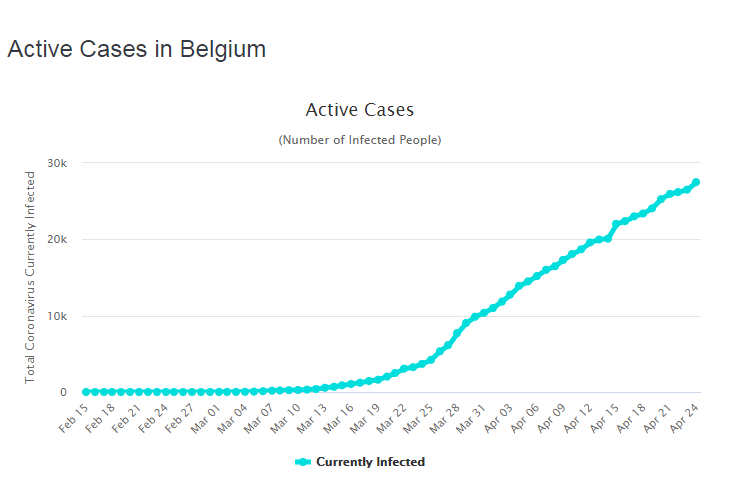 - 27% recovered cases, 59% active cases, 14% deaths;