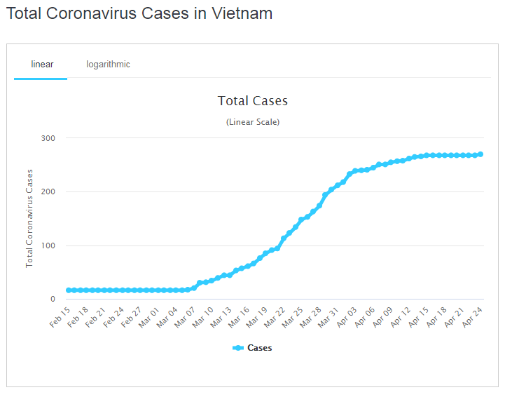 Vietnam has reported 0 COVID-19 related deaths with 268 cases after 90+ days since the first outbreak in January.