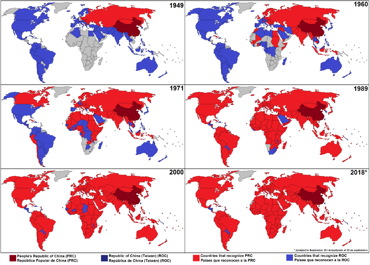 In 1971, the UN ceased to recognize the government of the Republic of China in Taipei (Taiwan) as the legitim government of China, and decided to instead recognize the government of the People's Republic of China in Beijing as the sole legitimate government of the whole of China.